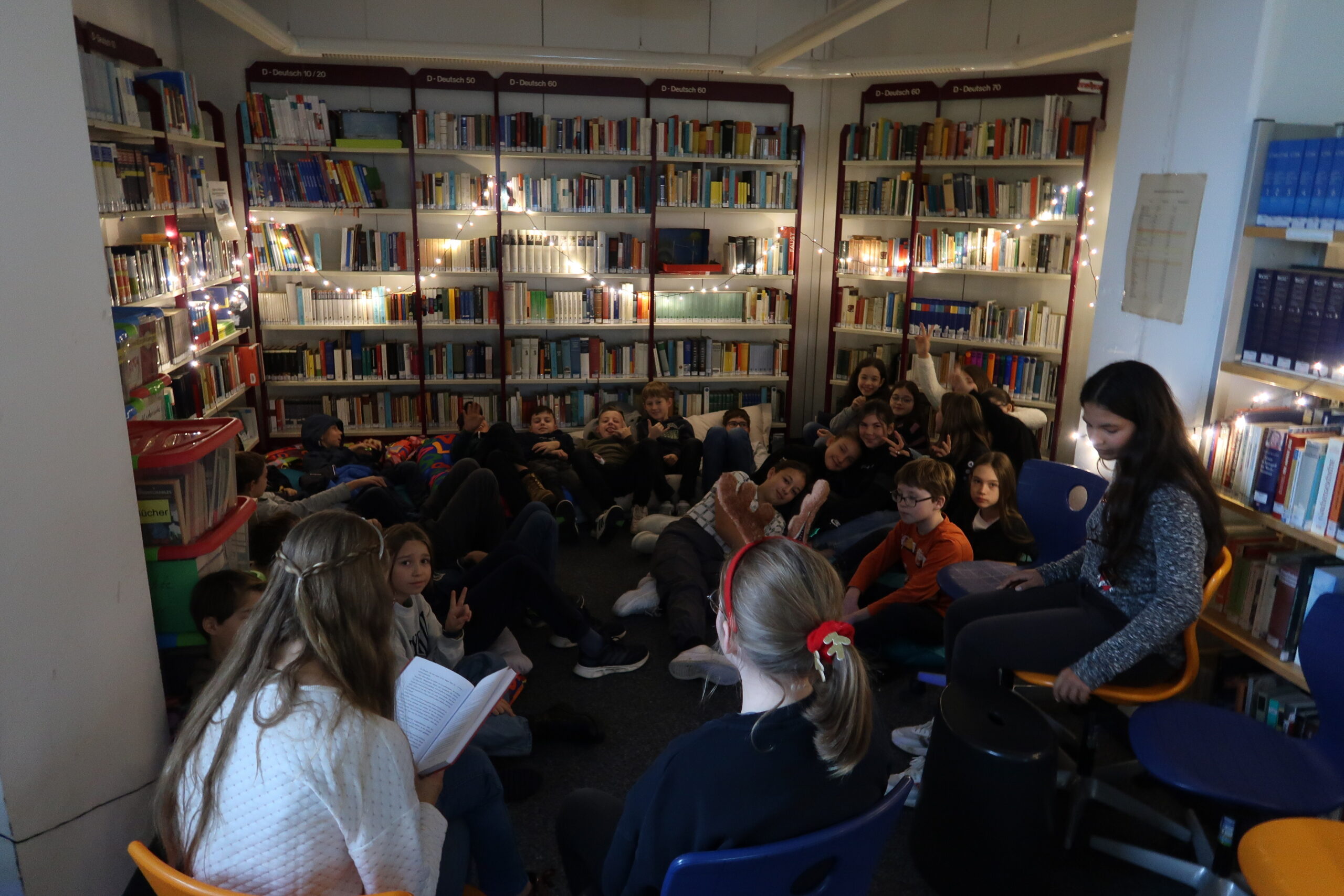 In der gemütlichen Atmosphäre des Lichterkettenzaubers der Bibliothek kommen die Schüler:innen zusammen, um gemeinsam Geschichten zu erleben. Diese Umgebung schaffte eine warme Atmosphäre, die das Lesen zu einem noch angenehmeren Erlebnis macht. Besonders in der Vorweihnachtszeit wird die Bibliothek zum Ort der Magie, wenn die Schüler:innen Geschichten von Weihnachten mit Opa oder aufregenden Abenteuern wie denen von Tom Gates lauschen.