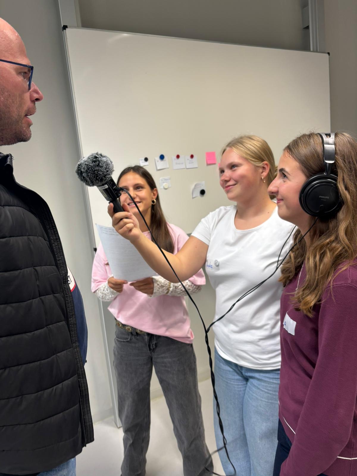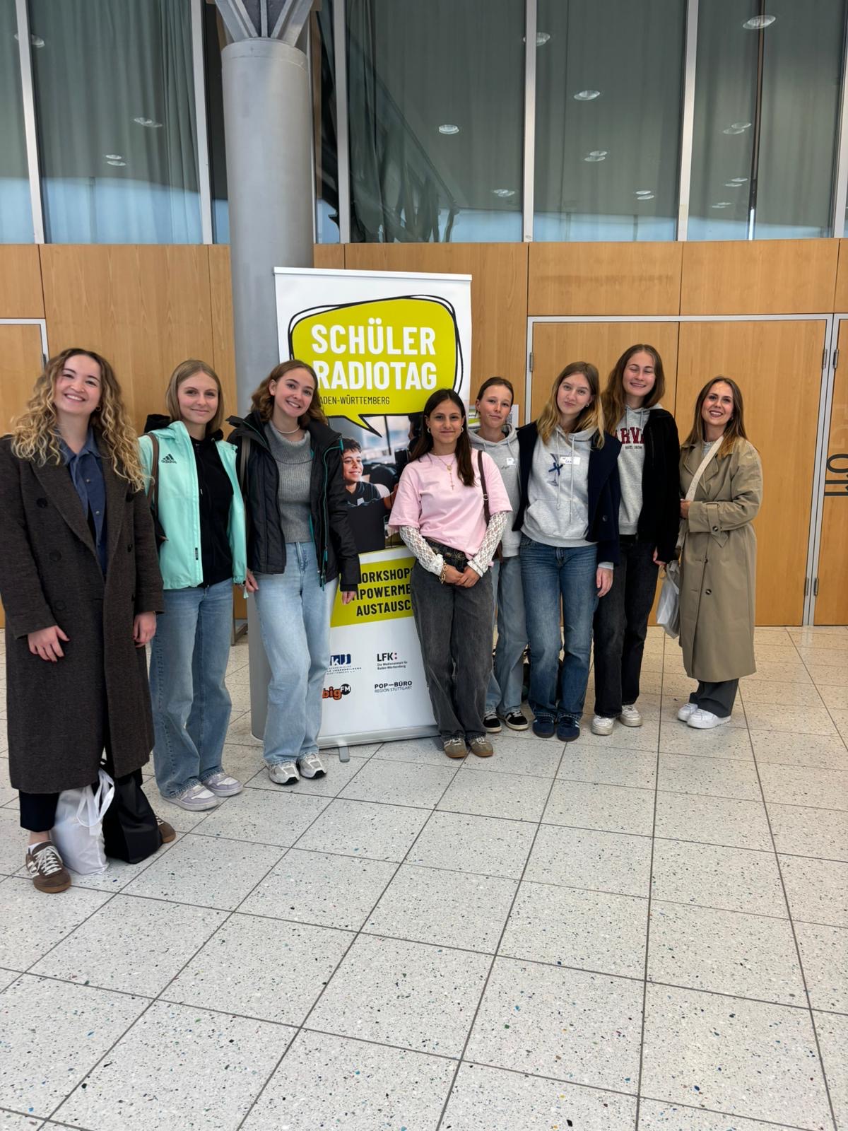 Am 26.09.2025 machten wir uns als Radioreferat auf den Weg an die Hochschule der Medien in Stuttgart, um am diesjährigen Schülerradiotag teilzunehmen. Vor Ort trafen wir auf rund 200 Schülerinnen und Schüler aus ganz Baden-Württemberg, die alle einer gemeinsamen Leidenschaft nachgehen: dem Radiosenden im Schulalltag. Aus einem vielfältigen Angebot von 14 praxisorientierten Workshops rund um Moderation, Interviewführung und Radiotechnik konnten wir jeweils einen auszuwählen. Unter Anleitung erfahrener Profis erhielten wir wertvolle Einblicke und Tipps, die wir direkt anwenden konnten. Außerdem konnten wir zeitgleich Kontakte mit anderen Schulradios knüpfen und uns über Erfahrungen austauschen. Das Highlight war am Ende zweifellos die Live-Sendung im Hochschulradio HORADS 88.6, in der wir unser neuerlerntes Können unter Beweis stellen durften.