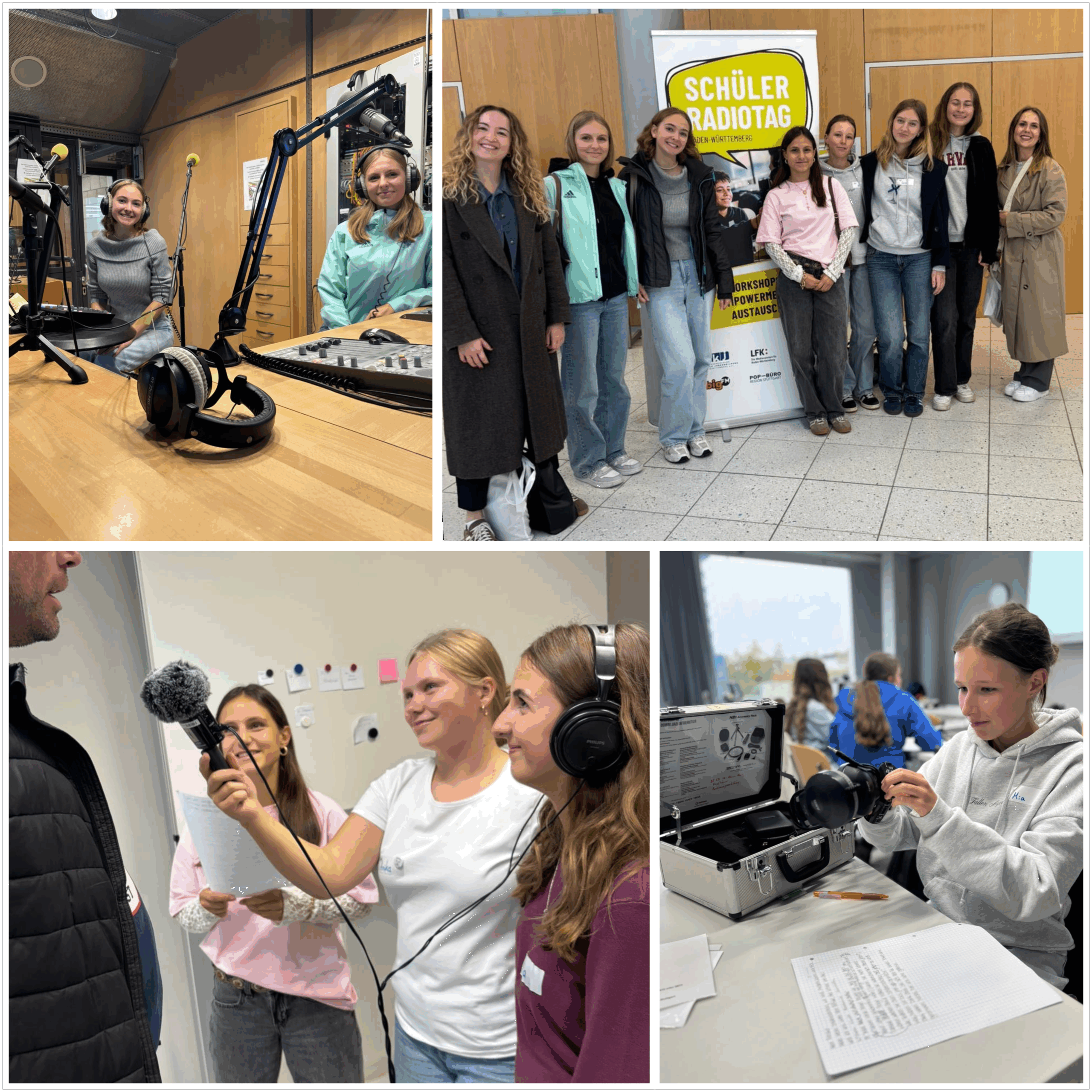 Am 26.09.2025 machten wir uns als Radioreferat auf den Weg an die Hochschule der Medien in Stuttgart, um am diesjährigen Schülerradiotag teilzunehmen. Vor Ort trafen wir auf rund 200 Schülerinnen und Schüler aus ganz Baden-Württemberg, die alle einer gemeinsamen Leidenschaft nachgehen: dem Radiosenden im Schulalltag. Aus einem vielfältigen Angebot von 14 praxisorientierten Workshops rund um Moderation, Interviewführung und Radiotechnik konnten wir jeweils einen auszuwählen. Unter Anleitung erfahrener Profis erhielten wir wertvolle Einblicke und Tipps, die wir direkt anwenden konnten. Außerdem konnten wir zeitgleich Kontakte mit anderen Schulradios knüpfen und uns über Erfahrungen austauschen. Das Highlight war am Ende zweifellos die Live-Sendung im Hochschulradio HORADS 88.6, in der wir unser neuerlerntes Können unter Beweis stellen durften.