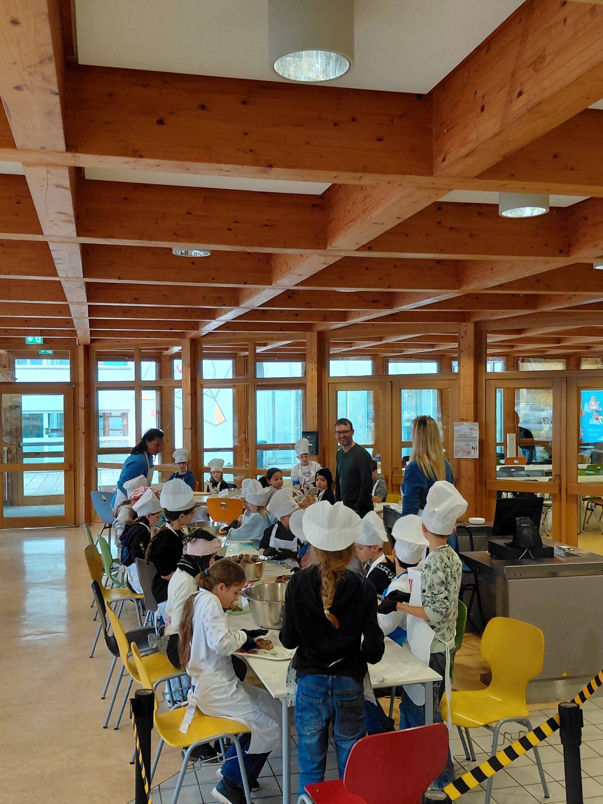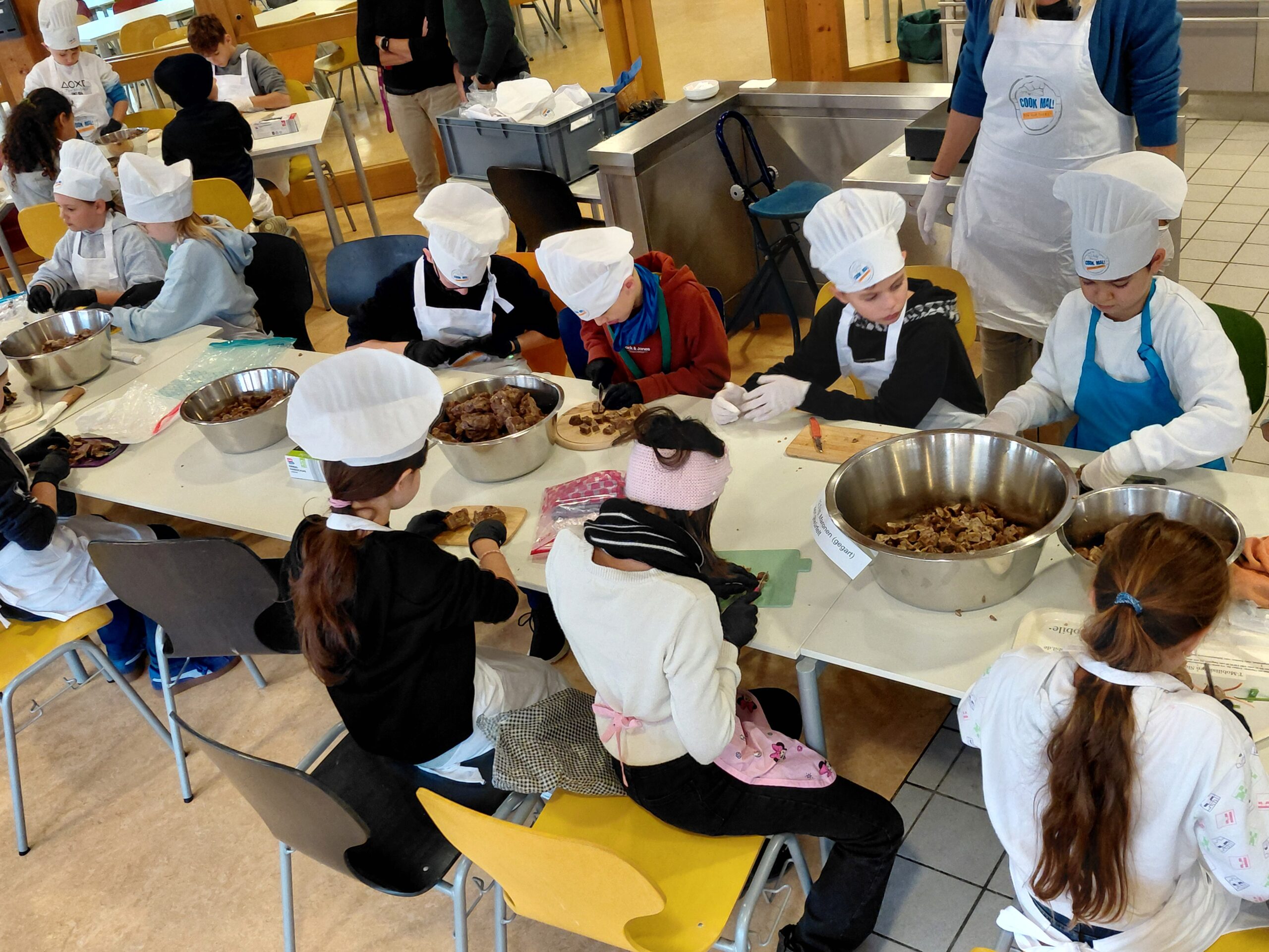 Nach dem erfolgreichen Mensafest am 14. November gilt ein großer Dank allen Helferinnen und Helfern. Von den anwesenden Köchinnen und Köchen gab es durchweg sehr positive Rückmeldungen: gelobt wurden z.B. die kreative Einladung und Speisekarte. Diese Jahr wurde die anwesenden Gäste mit Ofenbaguettes mit Dips, einem Maronencremesüppchen sowie Kaspressknödeln mit Rotkrautsalat, grünem Salat und Kräuterdip verwöhnt. Den kulinarischen Abschluss bildete wie immer ein Nachspeisenbuffet. Danke für die zahlreichen süßen Spenden!