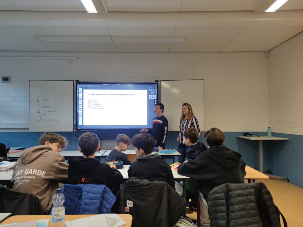Das Gymnasium Neckartenzlingen hat am Donnerstag den 22. Januar den deutsch-französischen Tag und damit die deutsch-französische Freundschaft gefeiert. Die Schüler und Lehrer wurden aufgerufen, sich in den Farben der französischen Flagge zu kleiden und im Schülerradio wurde französische Musik gespielt. Die Sechstklässler verteilten französische Süßigkeiten wie Carambar und Madeleines. Außerdem wurden von den Neuntklässern Crêpes verkauft. Das hat allen Schülern und Lehrern ein bisschen ein französisches ,,Feeling“ gegeben. In der Französisch Gruppe der achten Klassen hat Gildas, unser französischer Freiwilliger, ein Quiz an der elektrischen Tafel durchgeführt. Im Quiz ging es um die Geschichte hinter dem deutsch-französischen Tag und vor allem um den Élysée-Vertrag. Die Schüler haben eifrig überlegt und haben in kleinen Grüppchen die Fragen gut beantworten können. Auch anhand von Stellwänden, die Schüler gestaltet hatten, wurde über die deutsch-französische Geschichte informiert. Am vorherigen Tag durften auch einige französischlernende Schüler an einem online Wettbewerb teilnehmen. Die Schüler konnten in Teams zwischen verschiedenen französischen Themen entscheiden, dazu auf Französisch Informationen sammeln und zum jeweiligen Thema Aufgaben lösen. Aus eigener Erfahrung können wir sagen, dass der Französisch Wettbewerb sehr interessant war und viel Spaß gemacht hat. Insgesamt haben die zwei Aktionstage zum deutsch-französischen Tag großen Spaß gemacht und wir freuen uns schon auf das nächste Jahr.